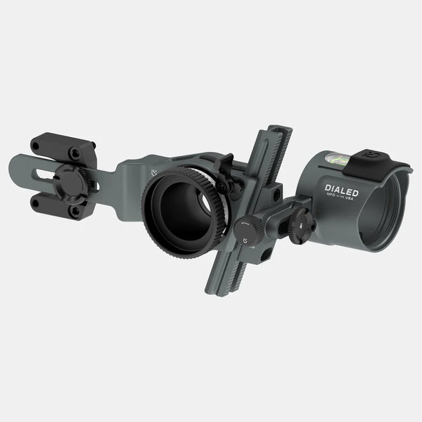 The Angled Elevation System (A.E.S.) is a patented design allows the archer to achieve further yardages before running into arrow vane clearance issues. By angling the elevation rail, we've also been able to shorten the amount of space needed on the sight tape; in turn, this requires less dial travel when you go to adjust yardages.