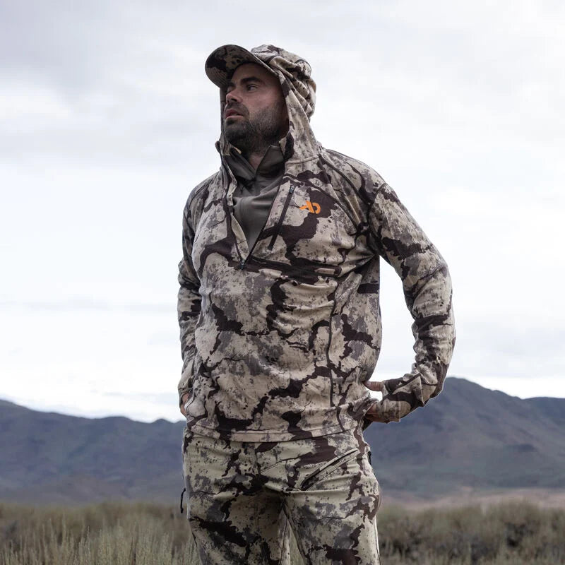 From September elk to January mallards, the Kiln Midweight 250 Merino-X Hoody is our do-it-all hooded base layer. The successor to our best-selling Chama Hoody, this piece is constructed of Merino-X for improved structure and resistance to tears and bagging. Perhaps the most versatile base layer component within the First Lite layering system, the Kiln simply cannot be beat as a do-it-all top for any hunter or outdoor enthusiast. With its 250 gram Merino-X fabric, this piece can be either your first or second layer and will keep you warm, comfortable, and odor free from September through May.