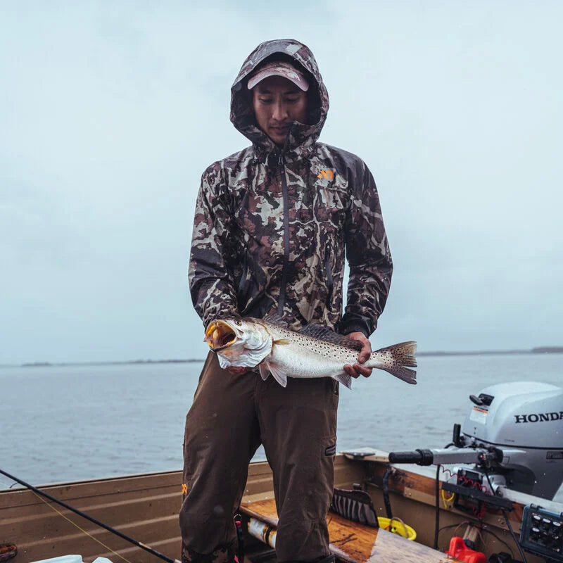Any backcountry hunter will tell you that carrying a solid rain jacket is a necessary evil but nobody enjoys the added weight of your average rain jacket. We designed the Vapor Stormlight Rain Jacket as a no-frills, bomber ultralight rain jacket that can keep you dry without filling your pack. At a featherweight 12 ounces, this hooded two-layer rain jacket is the best of both worlds. Like its big brother, the Omen Stormshelter Jacket, the Vapor features the Turret Hood and waterproof zippers.