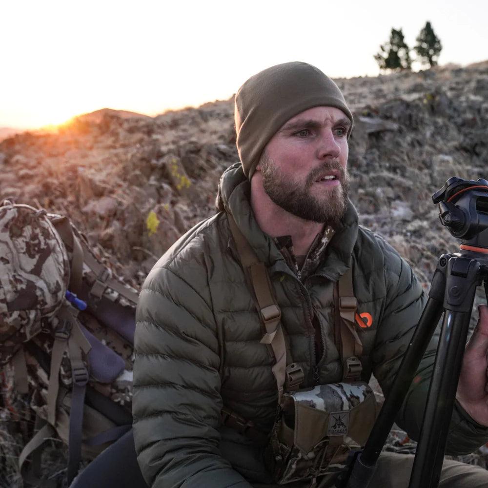 As you enter the core part of your hunting season and the temperatures slide towards freezing, reach for the Kiln 250 Beanie. The lofted 250gsm Merino-X construction will provide versatility, odor-resistance, and the right amount of warmth whether you're stationary or breaking trail. All colorways, except for First Lite Darkwater, also feature a reversible Hunters Orange interior, so you can choose between concealment or being visible to your fellow hunters.
