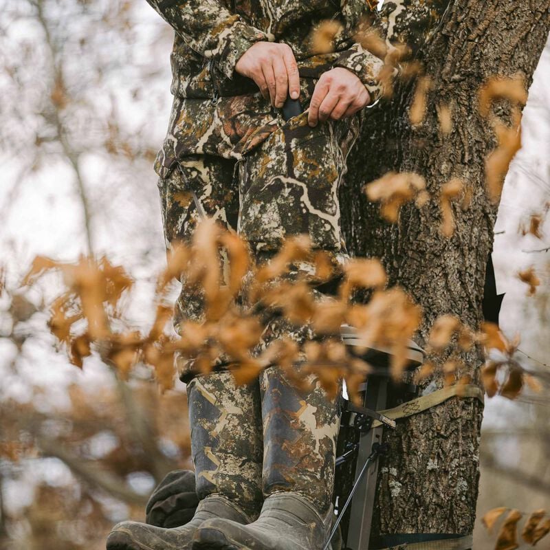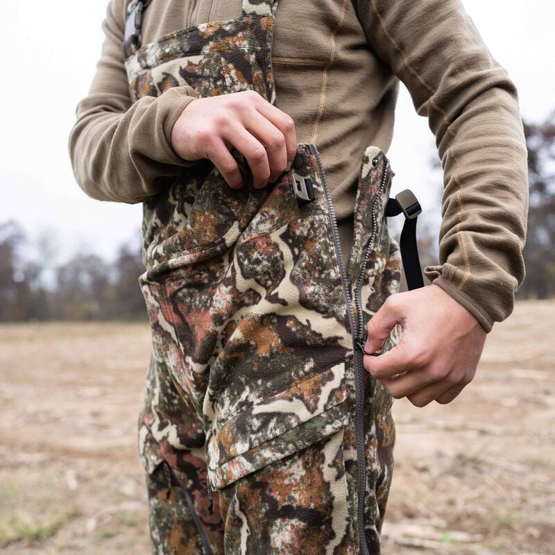 Ultra-quiet, durable, windproof, and water-resistant, this fleeced softshell is a versatile option for a wide range of temperatures and conditions. The bib is packed with features like tree stand-specific pocketing, full-length leg zips, adjustable waistband, and KitLink system compatibility, making it dialed for the tree stand or blind. Built to withstand a lifetime of hard use in the whitetail woods, the Phase Bib will become your go-to from the season opener 'til the leaves begin to fall.
