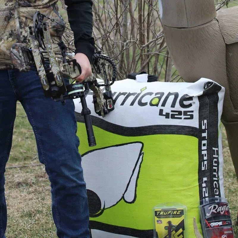 Hurricane targets feature highly visible aiming points that are easy to see against the contrasting background, even at longer ranges. Practice for hunting with the deer vitals on the back of Hurricane Bag Targets. For longer target life, the vitals are positioned off-center so they don’t line up with aiming points on the target front. Hurricane’s proprietary design gives you outstanding target performance. A strap handle makes Hurricane easy to carry.