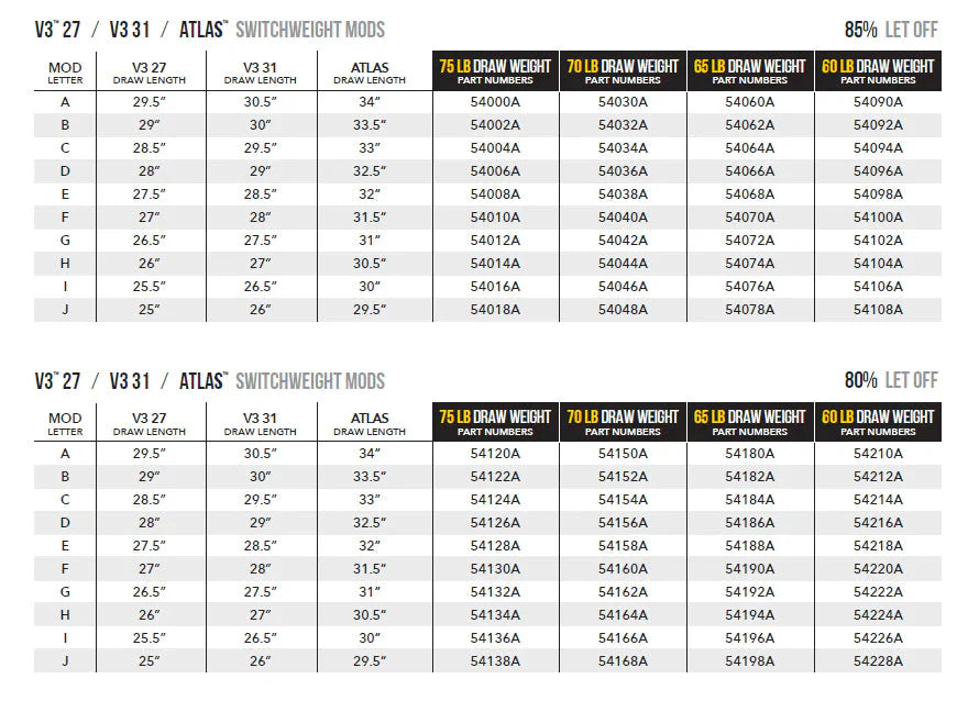 Mathews Switchweight are compatible with the Mathews Phase4 29, Phase4 33, Image, V3X 29, V3X 33, V3 27, V3 31, Atlas, VXR 28, and VXR 31.5.