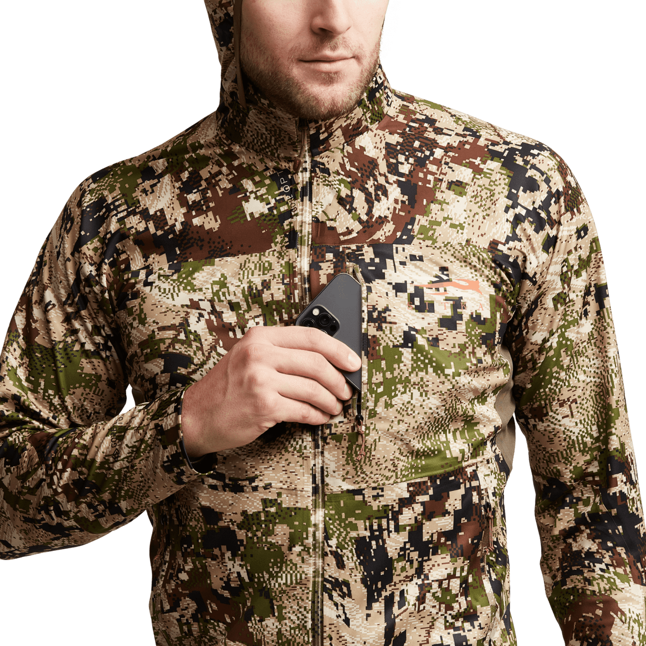 WINDSTOPPER® by Gore-Tex Labs technologyBody-mapped four-way stretch polyester panels maximize mobility and breathabilityUltrasonic welded seams add protection without adding bulk or weightContoured hood for warmth and concealment that won’t block visionZippered hand and chest pocketsTotal weight: 13.6 oz